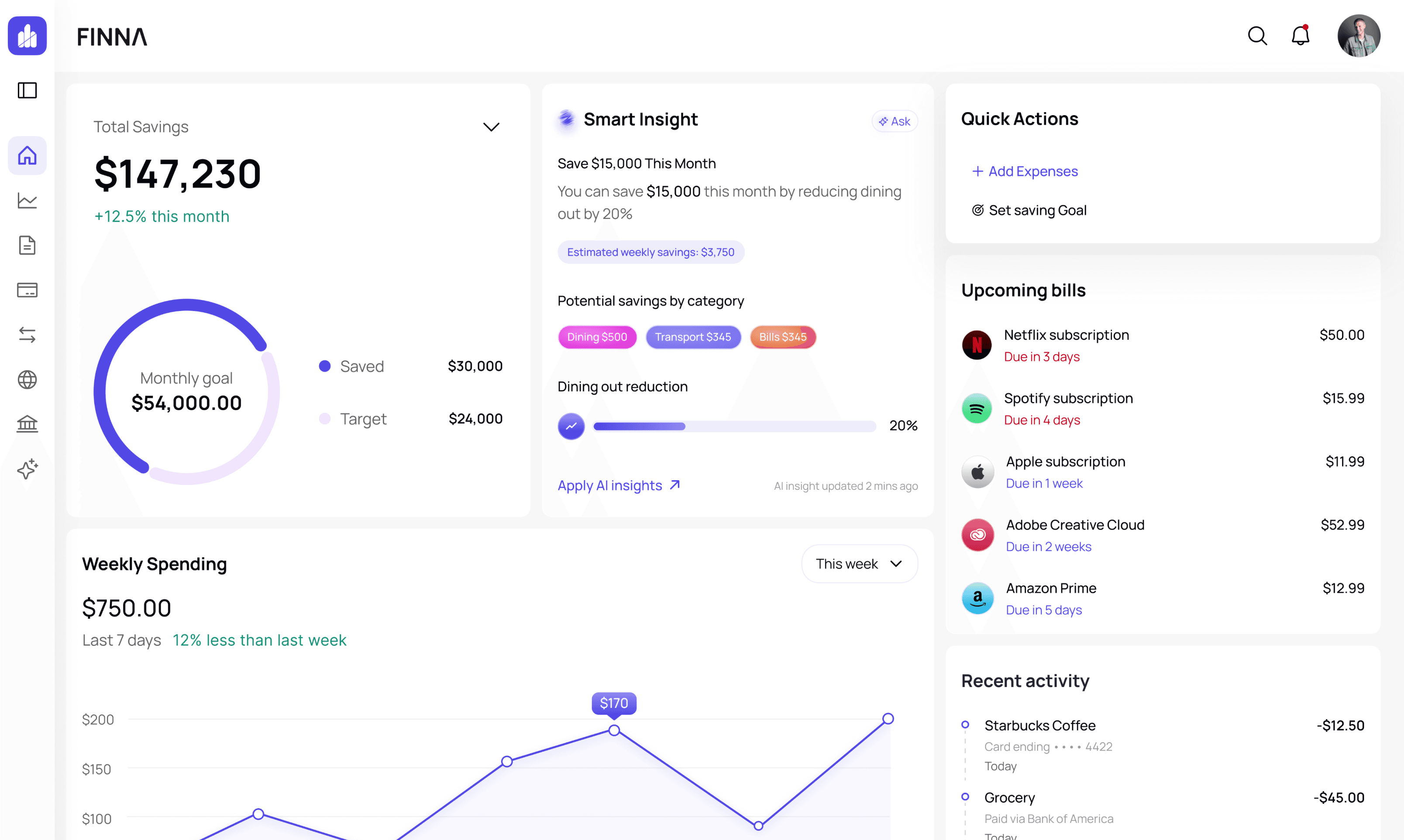 Finna uses AI and behavioral science to help you save automatically, no guilt. It learns how you spend, then gently nudges you to save more when it makes sense